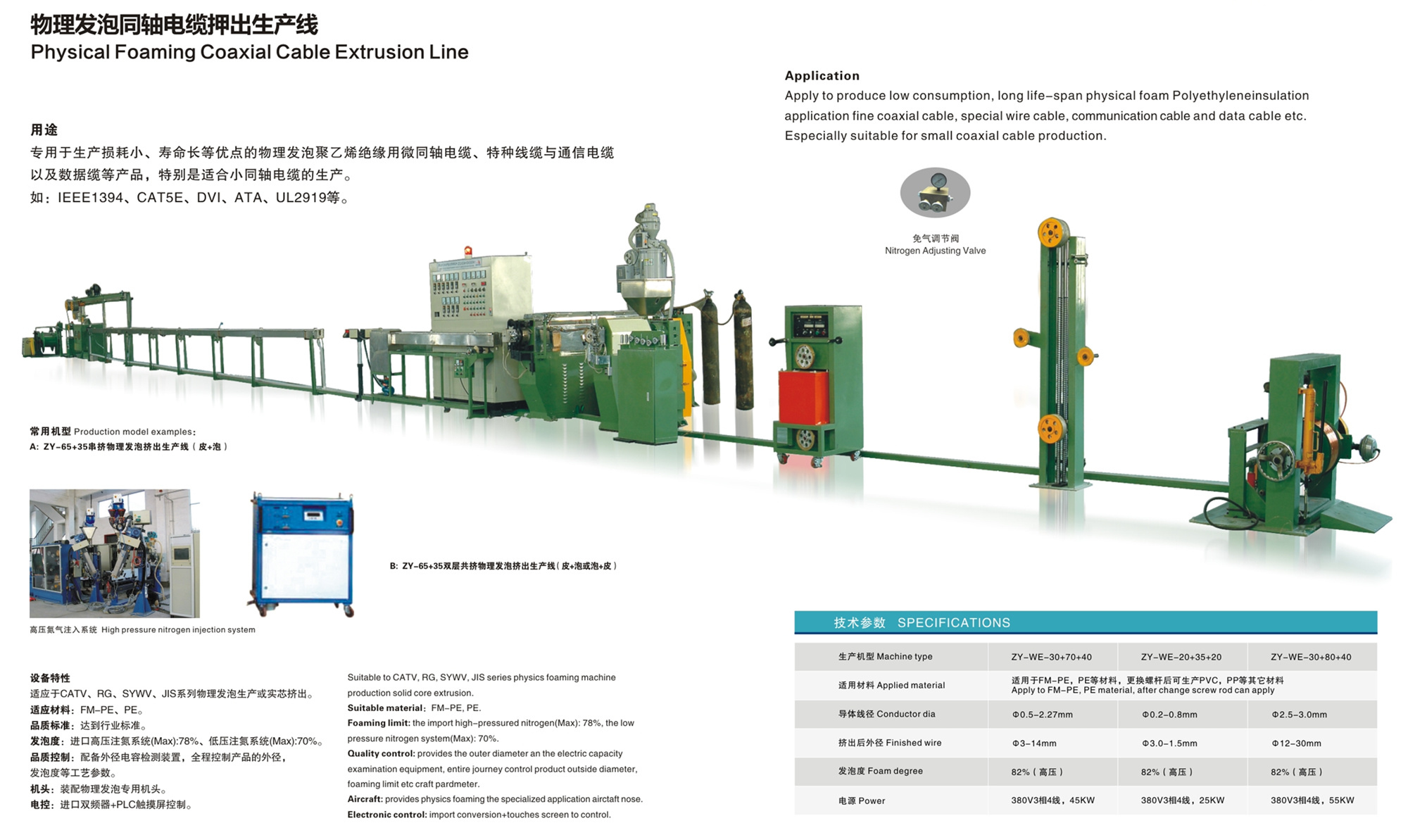 物理發泡同軸電纜押出生產線
