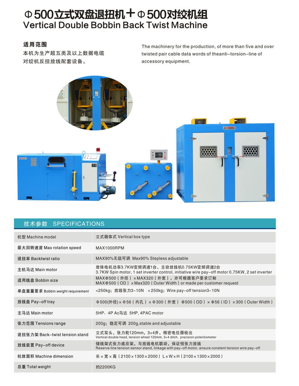 Φ500立式雙盤退扭機+Φ500對絞機組