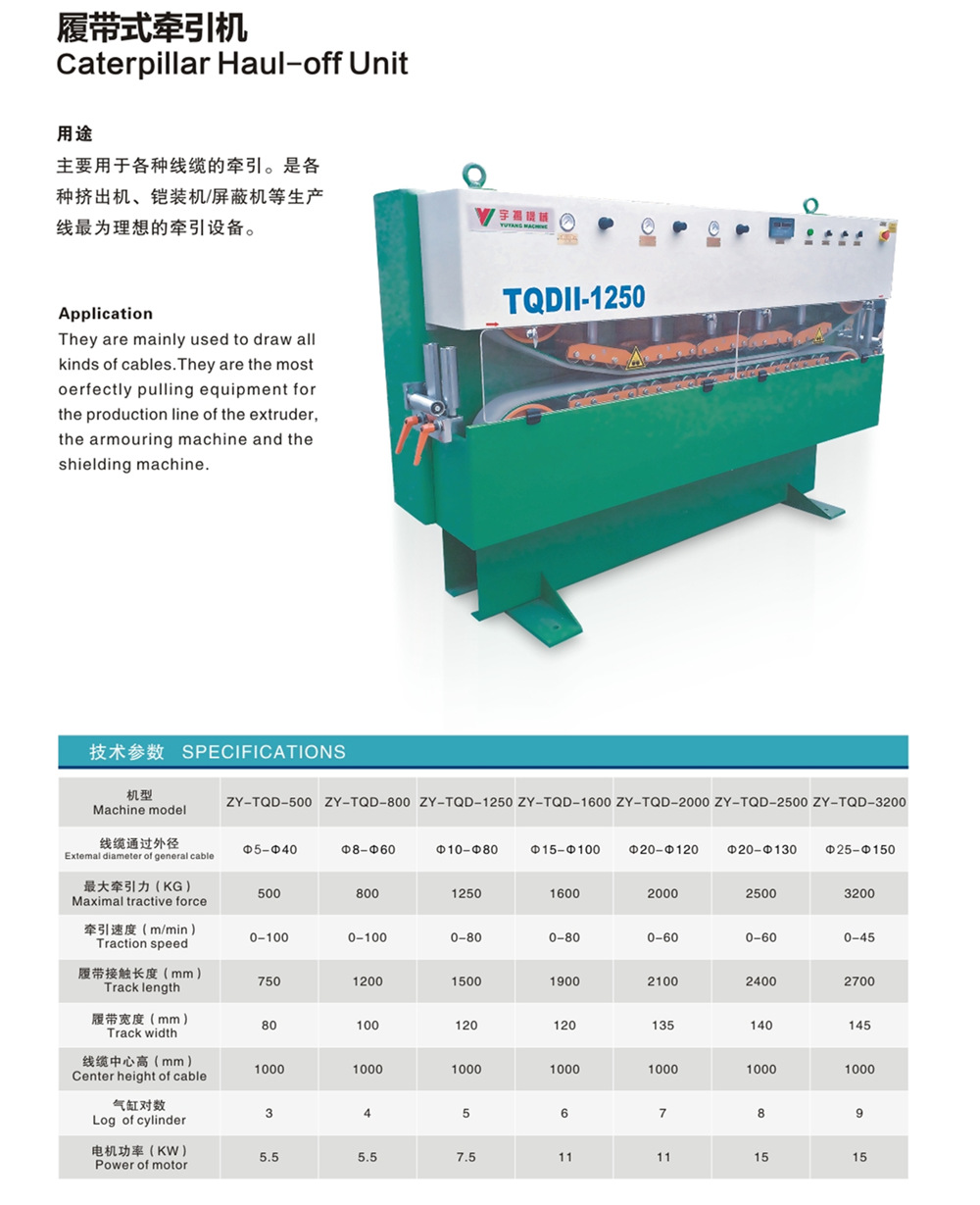 履帶式牽引機主要用于各種線纜的牽引,是各種擠出機,鎧裝機,屏蔽機等生產線的理想的牽引設備。