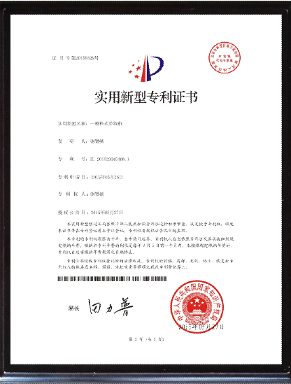 押出機(jī)廠家贊揚(yáng)榮譽(yù)-實(shí)用新型專利證書
